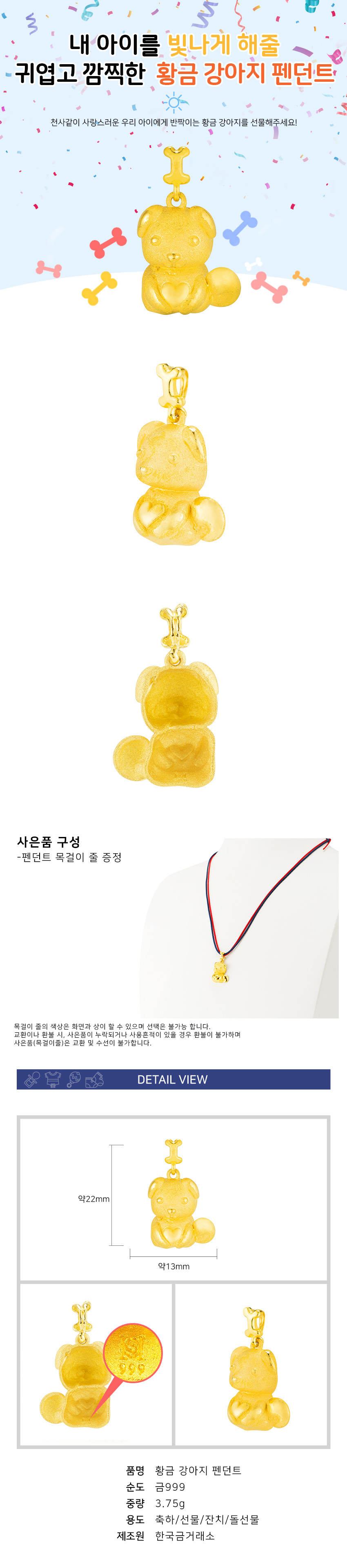 황금 강아지 펜던트 3.75g